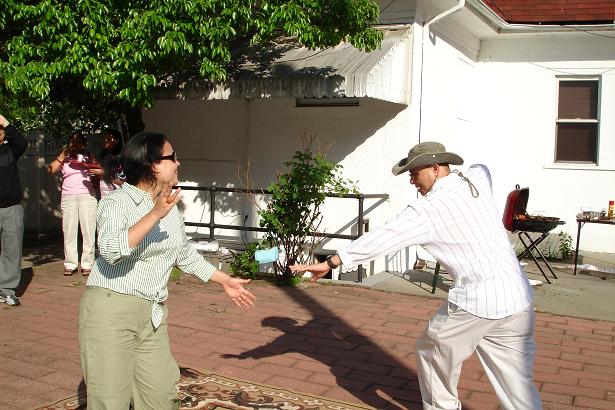 Thank you, Nepe for your kind words to me and my better half. It sure is always a pleasure to host friends for fun, food and some politics. After few days of scare of rain, the weather also took a dramatic turn around and contributed much to the fun. I was ecstatic over the fact that everyone seemed to love the food. Nepe ko ghazal recital was no less powerful -- even the ones who always might have believed they loathed shayaris seemed mesmerized with his powerful presentation. Dances...oh, well! I could not have done without indulging in my eternal love of jhyaure dancing. The above "taandav" was actually a Bharatiya Nattyam synchronized with Nepe's shayeris...lol...just kidding! I believe the song playing at the time was "Beli ra Chameli". As for the people, no, not all of them were poltically charged, let alone be leftists. Of the 45 or so at my backyard that day, most were my friends from NY area, many of whom came just to have fun. However, I had taken the opportunity to invite quite a few of my friends from my "political" circle (mostly the like-minded pro-democracy-walaas) so that I could at least have them talk more to each other. I thought further discussions on some politcal aspects in a fun environment might help generate new ideas on how to proceed with a common agenda. Of course, being so far away from home, whatever we decide to do would be limited to a great extent. This should not, I believe, however, discourage us from trying to do whatever we can do. Everyone, EVERYWHERE can contribute to the cause of democracy in Nepal in their respected ways in these times of repression. There were a couple of monarchists in the crowd too. My original intention of involving our opponents in the discussions so that BOTH camps can learn something from eachother, or, at least, hear the other side, seemed to have been successful. So much for politics. The day was great. The food was finished. Some danced their guts out, while others talked their hearts out about politics. Many got introduced to new friends. All in all, Ihope everyone had a great time. BBQ Chicken and Pork (besides the chhoila, alu ko achar and chap pat murahi):