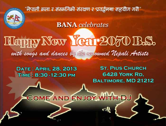 Please accept our warm wishes on this very occassion of Happy New year 2070 BS. It's time for celebration and we are proud to invite all of you with friends and families in this special cultural program with songs and dances from very renowed artists. Main attraction of this program will be the DJ-open dance floor to shake and twist in the rhythm of Nepali folk songs. I swear you guys lived it as we have very special popular singer to take to the dance floor.