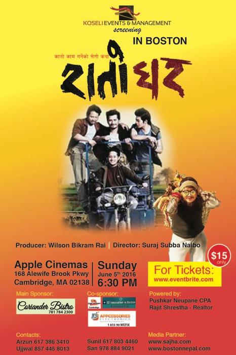 Namaste Everyone , Koseli Events & Management brings you the Super Hit Comedy Thriller Nepali Movie "RATO GHAR " in Boston on Sunday June 5th, 2016 . Director Suraj Nalbo subba who brought you blockbusters films like SAAYED , BATO MUNI KO PHOOL , FACEBOOK , ONE WAY etc now brings you RATO GHAR movie which has been critically and commercially successful all around the world. Don't miss this opportunity to watch an awesome COMEDY THRILLER movie with your family and support Nepali movies.