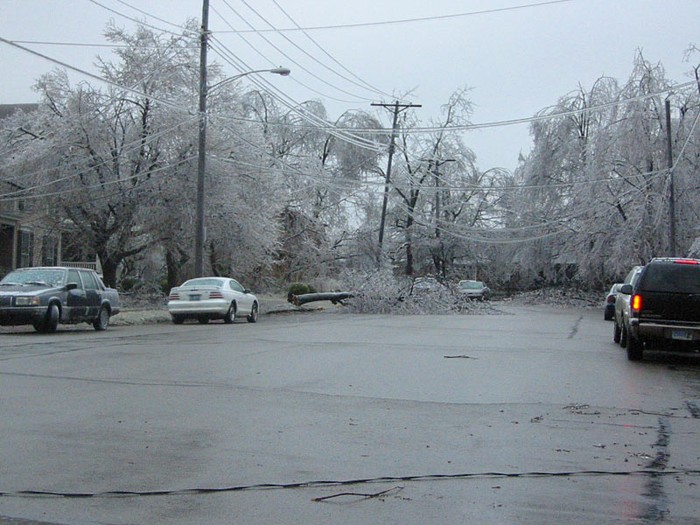 There was no power most of the way. One needed to drive extremely carefully, as it was not only pitch dark but also the road was slippery and often blocked by trees. Traffic lights needed to be treated as stop signs. As we exited the car in front of his house, it looked like a scene from a horror movie. The ground looked whitish with snow and the tree branches looked as if they were made of glass. Except once during a lightening it looked pitch dark elsewhere. There were also sounds from collapsing trees. The mayor of the city declared a state of emergency.